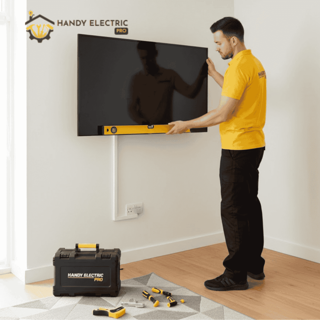 At Handy Electric Pro, we mount TVs, mirrors, pictures, and art pieces safely, neatly, and at the perfect height. Every fitting is level, stable, and safely installed no mess, no hassle, just a clean finish that transforms your space.